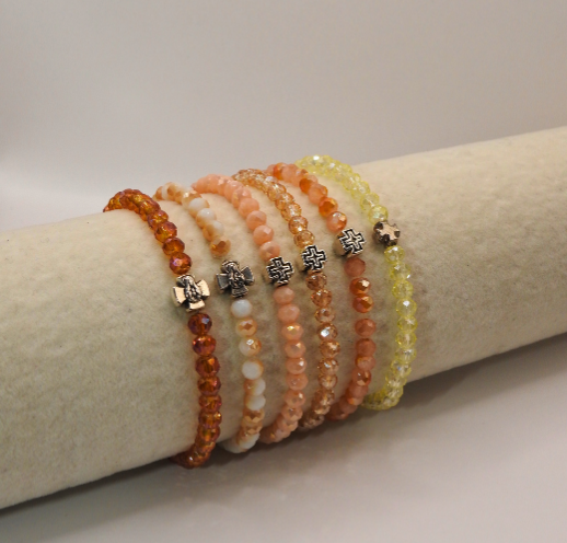 Radiating warmth and gentle joy, this bracelet collection is inspired by light, gratitude, and the beauty of faith. Designed in glowing shades of amber, soft apricot, creamy white, warm peach, honey gold, and luminous lemon, each bracelet reflects the warmth of sunlight and the hope found in prayer.