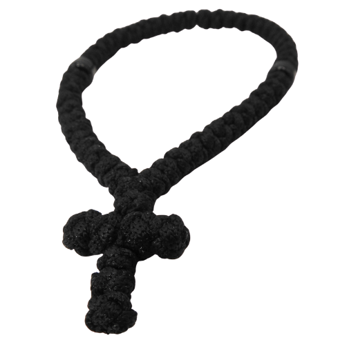 Black Prayer Rope with Cross – 50 Knots