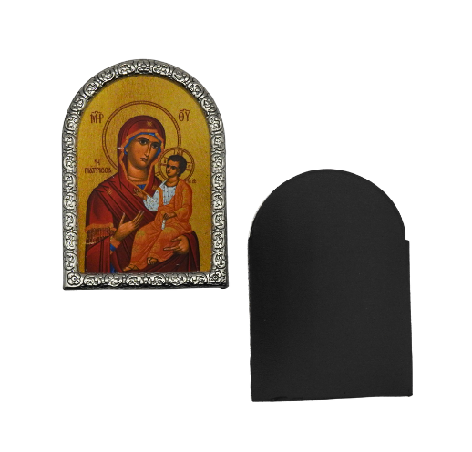 This beautiful icon magnet features a classic image of the Mother Mary with Child Jesus, presented in a traditional Eastern Christian icon style and finished with an elegant silver-colored decorative frame.