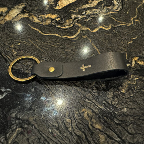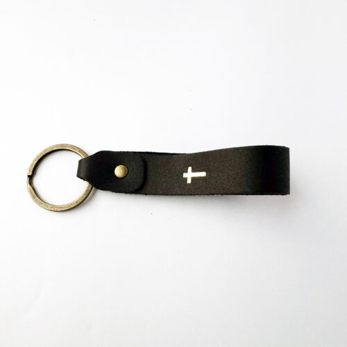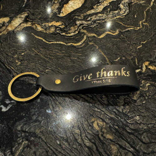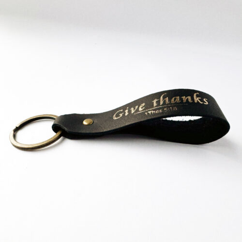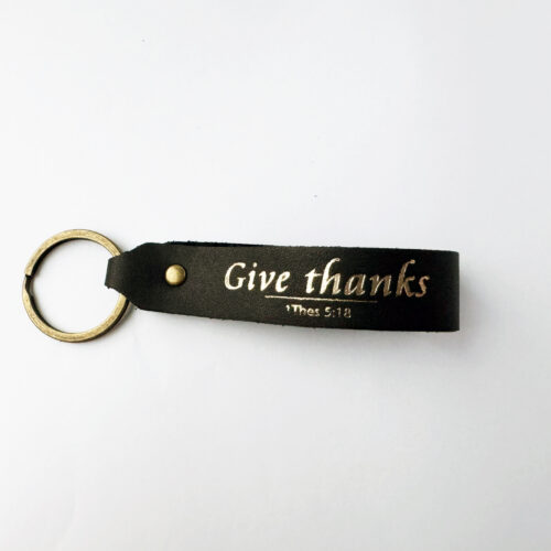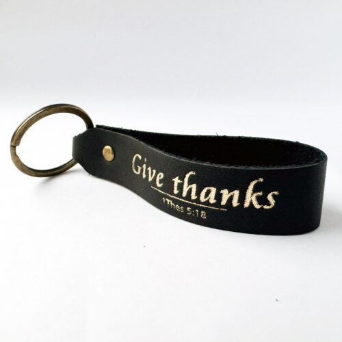 Key ring, real leather – Give thanks + cross